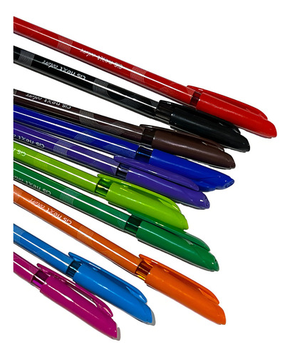 Descrição Caneta Esferográfica Kit Com 10 cores coloridas 0,7mm Cis Com este conjunto, você terá em mãos 10 cores vibrantes, que proporcionam uma escrita macia e confortável. As canetas possuem tampa ventilada para maior segurança e durabilidade, evitando que a tinta seque quando não estiver em uso. Com ponta ultra fina de 0,7mm, a espessura do traço é ideal para destacar informações importantes em suas anotações, desenhos ou trabalhos. Com seu corpo fino e super leve é prático para levar na bolsa, mochila ou estojo, garantindo que você sempre tenha uma caneta de cada cor à mão. A Caneta Esferográfica Next color 10 Cores é perfeita para uso escolar, profissional ou pessoal. Detalhes: Cores sortidas Marca: Cis Modelo: Next Colors Design Moderno Ponta de agulha fina (0.7mm) Escrita Super Fina, suave. Material: Plástico Corpo Fino Super leve Tipo de fechamento: Tampa de pressão Cores: Azul, preta, vermelha, rosa e roxa, azul claro, laranja e verde, marrom, verde claro.