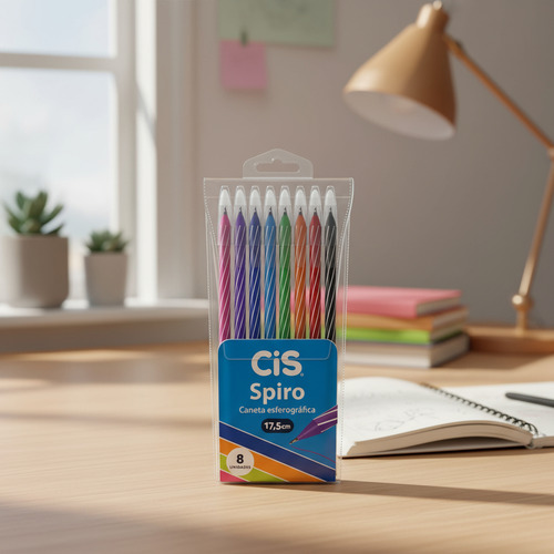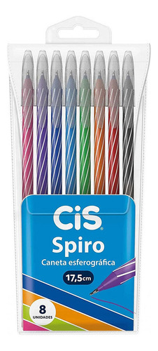 A caneta esferográfica CiS Spiro é ideal para quem busca qualidade e praticidade. Com traço fino de 0.7 mm, proporciona uma escrita suave e precisa. Feita em plástico de alta qualidade, é resistente e durável. O kit contém 8 unidades, ideais para uso em casa, no trabalho ou na escola. Caneta Esferográfica 0.7mm Cis Spiro Gel 8 Cores A Caneta em Gel 0.7mm Spiro possui 8 cores diferentes. Seu corpo é maior do que o das canetas convencionais, com design listrado e sua ponta é tipo agulha. Seu tamanho é de 17.5cm. Detalhes: Blister com 8 cores Tampa ventilada com clip Corpo longo de 17.5cm Ponta de 0.7mm Ponta agulha Tinta em gel