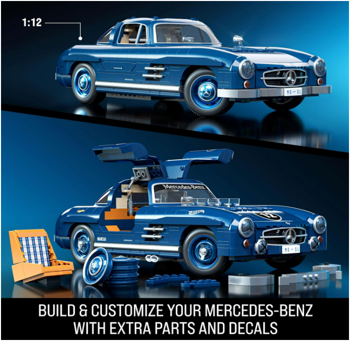 CARRO DE MONTAR HOT WHEELS BRICK SHOP CARRO MERCEDES BENZ 300 SL 1:12 (HWW25) | MATTEL